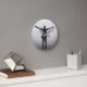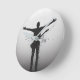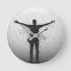 Denna cirkulära aluminiumnyckelring visar upp en slående svart-vit musikersiluett med utsträckta armar och en unik glitch-stil effekt.