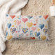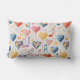 En roligt röd blåblå och gult musikhjärtan mönstrad dekorativ kudde