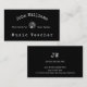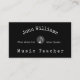 Svart och professionell kort med enbart grundläggande information... böjt namn med anpassningsbar ockupation (musiklärare) och inspirationstecken "när ord misslyckas, musik pratar" ... och adress, e-post och mobil längst bak...