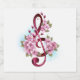 Rosan tredubblar klafen med finskalig, detaljerad rosa japansk körsbärsfärg mot vit bakgrund som är målad med ljusblå blommar. Blåser rosa sakura.