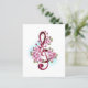 Rosan tredubblar klafen med finskalig, detaljerad rosa japansk körsbärsfärg mot vit bakgrund som är målad med ljusblå blommar. Blåser rosa sakura.