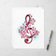Rosan tredubblar klafen med finskalig, detaljerad rosa japansk körsbärsfärg mot vit bakgrund som är målad med ljusblå blommar. Blåser rosa sakura.