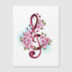 Rosan tredubblar klafen med finskalig, detaljerad rosa japansk körsbärsfärg mot vit bakgrund som är målad med ljusblå blommar. Blåser rosa sakura.