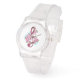 Rosan tredubblar klafen med finskalig, detaljerad rosa japansk körsbärsfärg mot vit bakgrund som är målad med ljusblå blommar. Blåser rosa sakura.