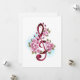 Rosan tredubblar klafen med finskalig, detaljerad rosa japansk körsbärsfärg mot vit bakgrund som är målad med ljusblå blommar. Blåser rosa sakura.