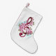 Rosan tredubblar klafen med finskalig, detaljerad rosa japansk körsbärsfärg mot vit bakgrund som är målad med ljusblå blommar. Blåser rosa sakura.