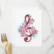 Rosan tredubblar klafen med finskalig, detaljerad rosa japansk körsbärsfärg mot vit bakgrund som är målad med ljusblå blommar. Blåser rosa sakura.