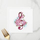 Rosan tredubblar klafen med finskalig, detaljerad rosa japansk körsbärsfärg mot vit bakgrund som är målad med ljusblå blommar. Blåser rosa sakura.