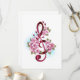Rosan tredubblar klafen med finskalig, detaljerad rosa japansk körsbärsfärg mot vit bakgrund som är målad med ljusblå blommar. Blåser rosa sakura.
