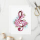 Rosan tredubblar klafen med finskalig, detaljerad rosa japansk körsbärsfärg mot vit bakgrund som är målad med ljusblå blommar. Blåser rosa sakura.