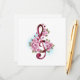 Rosan tredubblar klafen med finskalig, detaljerad rosa japansk körsbärsfärg mot vit bakgrund som är målad med ljusblå blommar. Blåser rosa sakura.