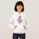 Rosan tredubblar klafen med finskalig, detaljerad rosa japansk körsbärsfärg mot vit bakgrund som är målad med ljusblå blommar. Blåser rosa sakura.