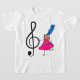 Nyckfull illustration för gullig tecknad av för lycklig för stick figurflicka lite ett innehav ett jätte- musikaliskt trebleklavsymbol. Lätt skräddarsy och välj din egna bakgrundsfärg eller tillfoga text. Avbilda tillgängligt på olika gåvor och produkter.