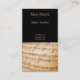Denna underbara visitkort visar en antik musiksida på bekläda. På baksidaen är en svart bakgrund med en mindre bild av musiksidan på grunden. Överst satte du din information om affären.