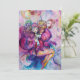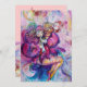 Färgstark, vit, rolig rosa som har lagt buggen med ett uttryckligt uggla och glatt musik noter,blommor,löv i vibrant rött,fuchsia,violett,lila,blått,vitt färg, vattenfärgsmålning av Bulgan Lumini (c)