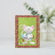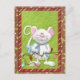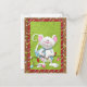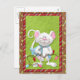 Mus julhälsningskort och vykort med en vacker vit mus med ett band av helgdag ljus.