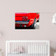 Högdefinitionsfotografi av baksidan av högerna/svan i en röd amerikansk muskelbil i färg.