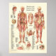 Muskuloskeletala systemet och bröstcancer i kvinnlig anatomi Poster. Skapat med vintage bild som visar muskler och inälvor i kvinnlig kropp inklusive kor i huvud och nacke, lungor och bäckenet golv. Före och poster vyer av bröstkorg, arm och ben.
