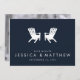 Perfekten Spara datumet för att meddela din kommande sjö-sida, stuga eller bröllop utomhus. Har silhuetten med två vita muskoka/adirondack-stolar på en marin bakgrund med text som anpassar sig efter namn och datum. Lägg till förlovningens foto på baksidan.