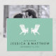 Perfekten Spara datumet för att meddela din kommande sjö-sida, stuga eller bröllop utomhus. Har silhuetten med två vita muskoka/adirondack-stolar på en turkobakgrund med svart text som kan anpassas efter namn och datum. Lägg till förlovningens foto på baksidan.
