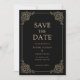 Islamiska muslimska bröllop Spara Datum kort. Svart färg kort med guld typsnitt på framsidan. Vintage barock kant ram kallelse som kan användas för Nikah, Mehndi och Walima ceremonin. Anpassa färgen, typ och storlek på typsnitten med Zazzle's design verktyg. Du kan redigera framsidan och baksidan av kortet. Du kan välja en pappers typ.
