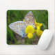 Gemensamt parande av blå fjärilar (Polyommatus icarus). Män är blå och honan är brun