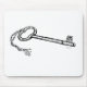 Denna unika musmatta har ett tryck av en penna-och-bläck teckning av en gammal antika nyckel. Konstverk upphovsrätt: Dominic White. Alla rättigheter förbehållna.