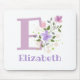 Designen har monogram och namn med blommor på vardera sida i en pastellfärgad vattenfärgstil. Exempel namn är Elizabeth. Kan vara för vem som helst med ett namn som börjar med E.