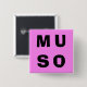 En skarp och fet knappknapp, på rosa med svart textdesign av ord 'muso' (en musiker eller musik från älskare). Påstående-brickan gör ett ljud val för musiken älskare.