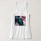 Composición más expresiva y abstracta: rostro femenino con contrastes bicolor, trazos fluidos, manchas y líneas que generan movimiento y profundidad. La flor central actúa como sello botánico de la colección, manteniendo la estética neon teal & pink para una línea uniforme en cojines, sudaderas y pósters.