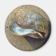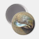 En musselstrand vilar på sandstranden med lätt sidokörning från solnedgången. Ljuset fångar upp de beskurna kanter som har bärts av havet. Från vinkel ser snäckan ut som en örls huvudprofil där snäckans klast har en liknande kontur. Bilden är ett foto från färg som tas i Playa Grande, Costa Rica på Stilla Kusten. Anpassa den här strandmagneten för snäcka med din egen text eller bilder för att göra en speciell årstidsgåva!