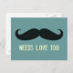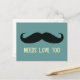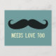 Vår Mustache behöver Kärlek för Funny-vykort är en coola-present-idé från hela tillfälle! Utformningen har trendiget som måste hålla motiven mot en modern blå bakgrund med vit text. Perfekt för snabb, handskriven hälsning, mustasch-inbjudningar, etc. Tillgängliga volymrabatter!