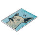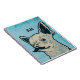 Quirky mustache hund art på pastellblå tegelbakgrund som du kan anpassa med initialer eller namn.