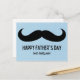 Det här vykortet i Fars dag har en djärv och lekfull design, perfekt för att fira ett speciellt pappa. Framsidan visar en stor, stiliserad svart mustasch som ställs mot en ljusblå bakgrund prickad med vitt polka dots. Under mustaschen visas texten "Lycklig Fars dag" och "Bästa pappa någonsin" i en roligt och lättläst typsnitt, där tillfälle varma och tillgivenhet fångas upp. Om du lägger till en personlig beröring är kortets baksida anpassadet, vilket gör att du kan lägga till ett uppriktigt, personligt meddelande som gör det här kortet lika unikt som det pappa det firar.