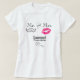 Ett exempel på en bröllop-jubileumsskjorta med glamorös rosa kissy läppar och en maskulin, tittar mustasch. Texten säger Mr och Mrs. och ni kan personalisera med ert namn och er anpassningsbar text som "25 år tillsammans". Avslutat med ett finare dekorativt hjärta snabbt.