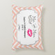 En kudde med en modern utformning av stil bröllop - glamorös rosa kissy läppar och en maskulin, tittar mustasch-illustration. Ställ in på en persikofärgad bakgrund. Texten säger Mr och Mrs. och ni kan personalisera med er namn och bröllop-dejt i ett finare-dekorativt ram.