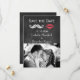 En roligt måste ha ont och läppar, på en illustrerad kritersbakgrund, accentuera fotot på denna Spara datum.