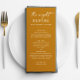 Lägg till en nykter värme till ditt fallbröllop med den minimalistiska senapsmiddagsmenyn på gulten. Designad i en ren, contemporary stil med rik och kron ton, är det perfekt för mysiga höstmöten. Anpassa menyn med dina val av middag för att matcha din bröllop-vibe - perfekt för rustisk chic, modern lada eller skörda firande.