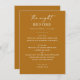 Lägg till ett fet säsong-tryck till "Natten före" med den här senapsmiddagsmenyn för förnyad gult. Den gyllene tonen i riken och en ren, modern utformning gör det till ett idealiskt val för fallbröllop, särskilt de med rustika, boho eller återinspirerade teman. Perfekt för engagerat par, värdar eller bröllopsfixararna som vill ha en varm, sammanhängande titt på sina firande före bröllop. Den här redigerbara mallen är enkel att anpassa med din middagsinformation om kurser och evenemangsinformation.