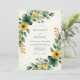This elegant design features a rich palette of mustard yellow and deep emerald green watercolor florals. The botanical artwork showcases delicate poppies and berries intertwined with lush eucalyptus leaves. It evokes a sophisticated atmosphere perfect for a nature-inspired or rustic ceremony. The off-white backdrop provides a classic contrast to the vibrant organic elements.