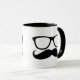 Den moderiktiga mustaschen med tjocka svart exponeringsglas.