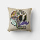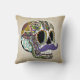 Hand plockadebläckillustration av en sport för day of the deadsockerskalle en spiffy mustasch! Tillfoga text för att personifiera, och you'vehar en fantastisk kudder! Denna är den färg-/vintageversionen - det finns också svartvita och för anpassadefärgbakgrund versioner, så kontroll ut alla av tillgängliga designer och produkter!