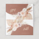 En elegant fall terracotta bohemian terracotta, ett bröllop-platskort för kalligraftecken för bordsnummer, accenterat med handdragen vattenfärgad rosa, lila och vitt torkat ro, pampasgräs och handflatan löv med sidbåge.