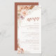 En elegant faller terracotta bohemian terracotta på menyn bröllop med en kalligrafibokstav som är accentuerad med handdragna vattenfärgade ro, pampasgräs och handflatan löv.
