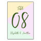 Samling i bröllop med nedsänkt pastellbakgrund, gult och lila med oliv grönt text