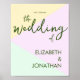 Samling i bröllop med nedsänkt pastellbakgrund, gult och lila med oliv grönt text