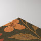En konstnärlig illustration med ett svartklädt solitärt figur, som ställs mot en välmönstrad bakgrund som består av olika blommigtar i , och gröntar. De rika blommorna skapar en tapetliknande atmosfär som för med sig värme, nostalgi och en känsla av vintagens elegans till scenen.