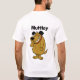 Ilustración digital de un perro caricaturesco al estilo clásico de los años 70, con pelaje amarillo-marrón, orejas negras, collar rojo y expresión divertida mientras se ríe con una mano sobre la boca. Diseño en colores planos y líneas gruesas sobre fondo gris oscuro, evocando el estilo retro de animación vintage.