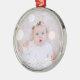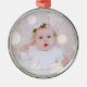 Ditt baby-foto på ett runt metall-ornament. Ladda upp din egen bild för att skapa Julgran-prydnadsföremål för dig själv eller ge som en gåva till familj, vänner, föräldrar och mor- och farföräldrar! Ord kärlek i ett checkskript visas över fotot på framsidan och lägg till baby namn och födelsedatum på baksidan.