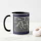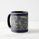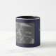 The Mug features a calm design in dark blue tone. An athletic man performs an intense spinning workout on an indoor bike. Focused and full of energy, he trains endurance and cardio in a modern gym environment.